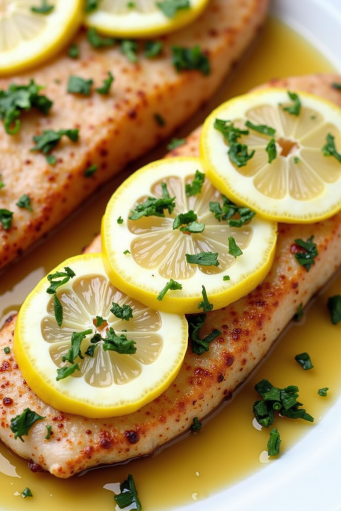 Lay your seasoned fillets in a baking dish, pour over any remaining marinade, and top with thin lemon slices. A quick bake in a hot oven ensures perfectly cooked, flaky fish without any risk of overcooking. For a pretty finish, garnish with fresh herbs like parsley or dill right before serving.