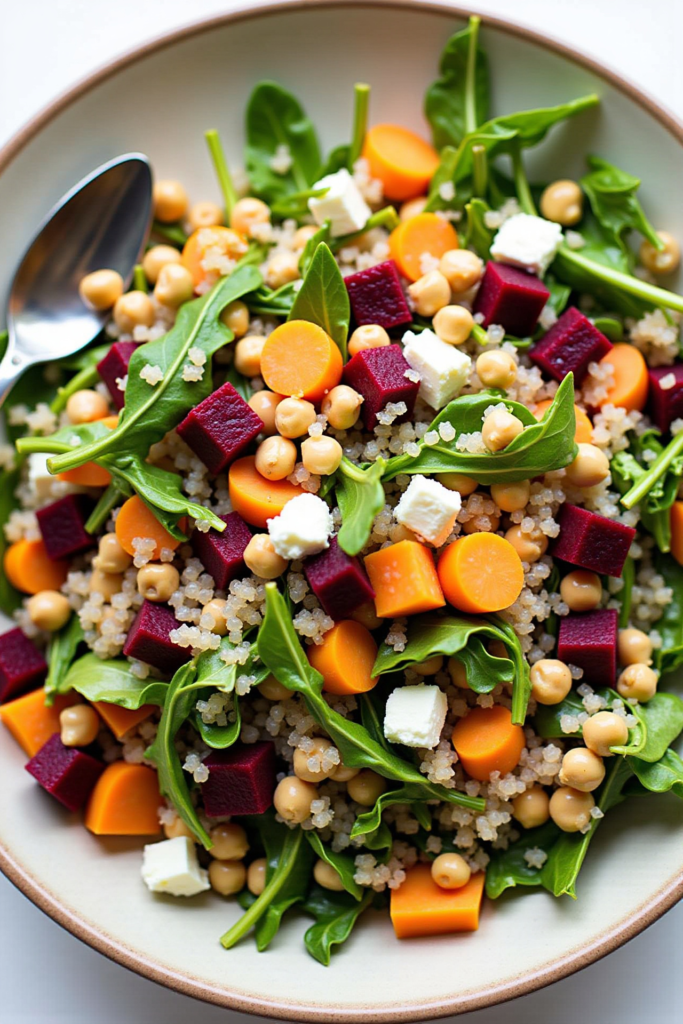 - Cook grains (quinoa, brown rice, or farro) first; set aside.